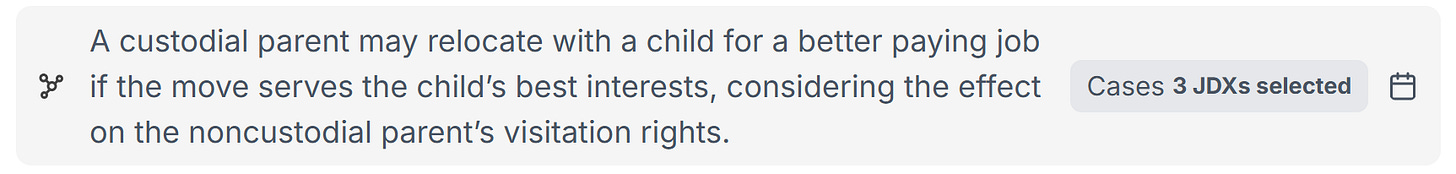 Here’s a mock research assignment showing how Midpage can help a family law attorney quickly uncover the governing rules on parental relocation in custody disputes.