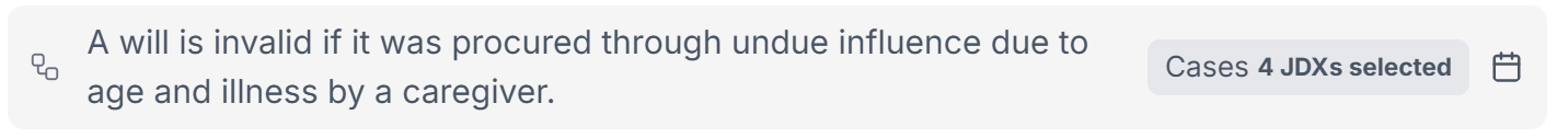 Instead of typing general keywords like “New York will contest caregiver undue influence”, you begin with a focused proposition: